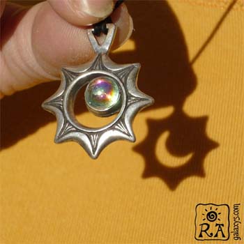 ネックレスを太陽光、あるいは何かの光に翳してその影を映せば、日食をシミュレートした影像を見ることができます。
